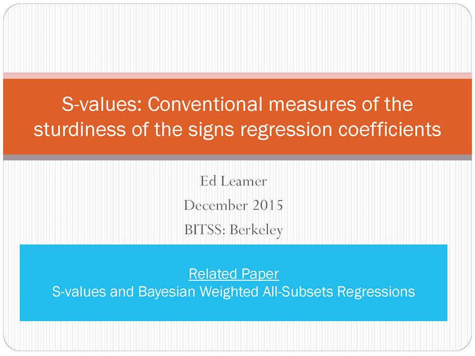 S-values Conventional measures of the sturdiness of the signs regression coefficients (Ed Leamer)_p1 January 25, 2016